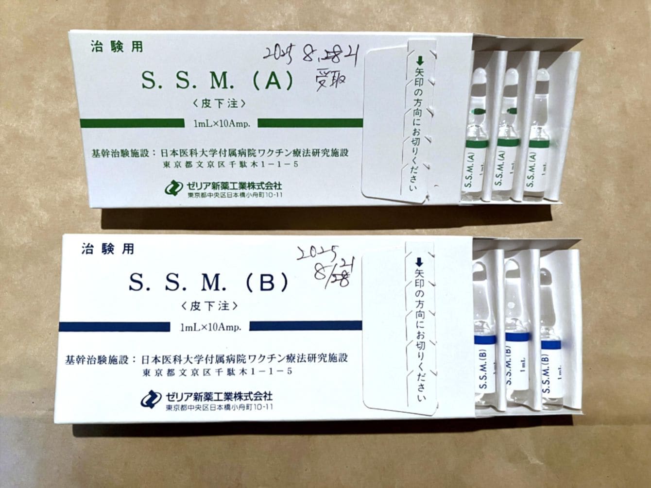 治験用S.S.M.(A)、故丸山千里博士が開発した「丸山ワクチン」の箱とアンプル