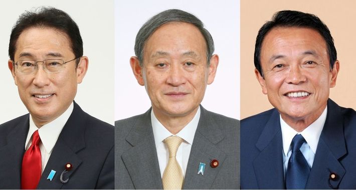 首相経験者の3人。右から麻生太郎氏、菅義偉氏、岸田文雄氏(写真=首相官邸ホームページより)