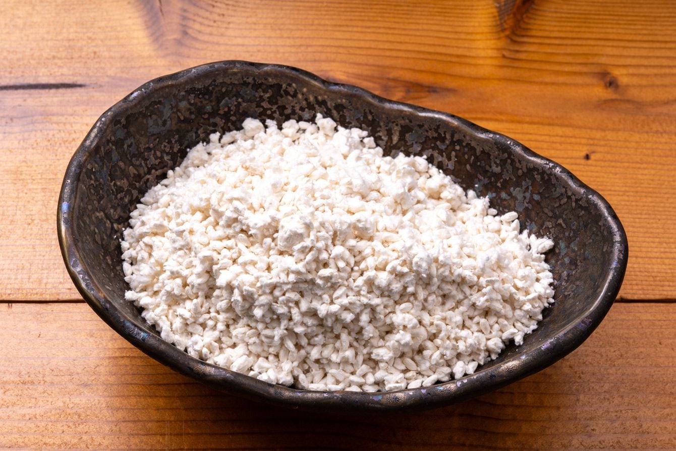 原材料名に「米麹」のみが記載されている。写真は、八海醸造の麹甘酒「あまさけ」のもの。