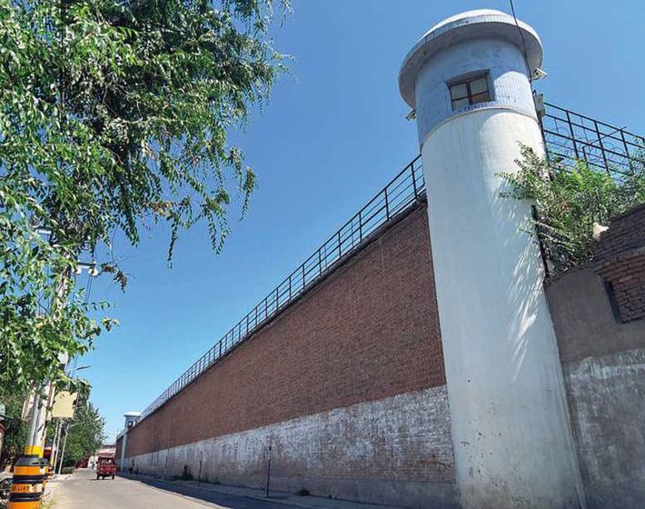 新疆ウイグル北西部の街・グルジャにある収容所とされていた建物。高さ7~8mはあろうかというレンガ造りの外壁の上に有刺鉄線が張られている。