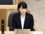 前橋市議会の本会議に出席する小川晶市長=2025年9月26日午後、前橋市