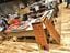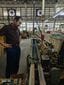 鉛筆の軸となる木材を加工する工程。熟練工の手作業が品質を支える