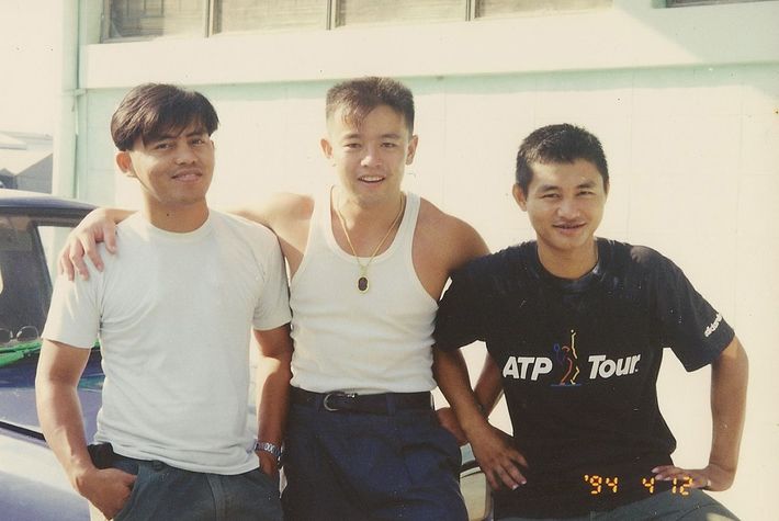 社員旅行でタイ人スタッフと写る井口さん(中央上)