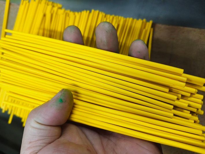 木軸に塗装を施す工程。タイ工場の鉛筆づくりは約40の工程を経て完成する