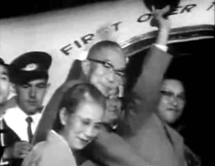 日ソ共同宣言の調印のため、薫夫人とともにモスクワへ向かう鳩山一郎総理(写真= 昭和宰相列伝5/PD-Japan-oldphoto/