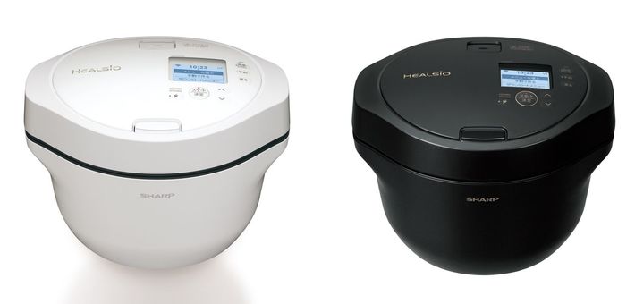 シャープのホットクック proシリーズ。左が1.6LのKN-HW16H-W、右が2.4LのKN-HW24H-B(実勢価格7万1860円)。このほか、1Lサイズや、かき混ぜ機能を搭載しないwithシリーズを用意する