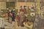 右上でタバコをふかしているのが山東京伝。歌川豊国画「山東京伝の見世(店)」、18世紀。東京国立博物館蔵(出典=