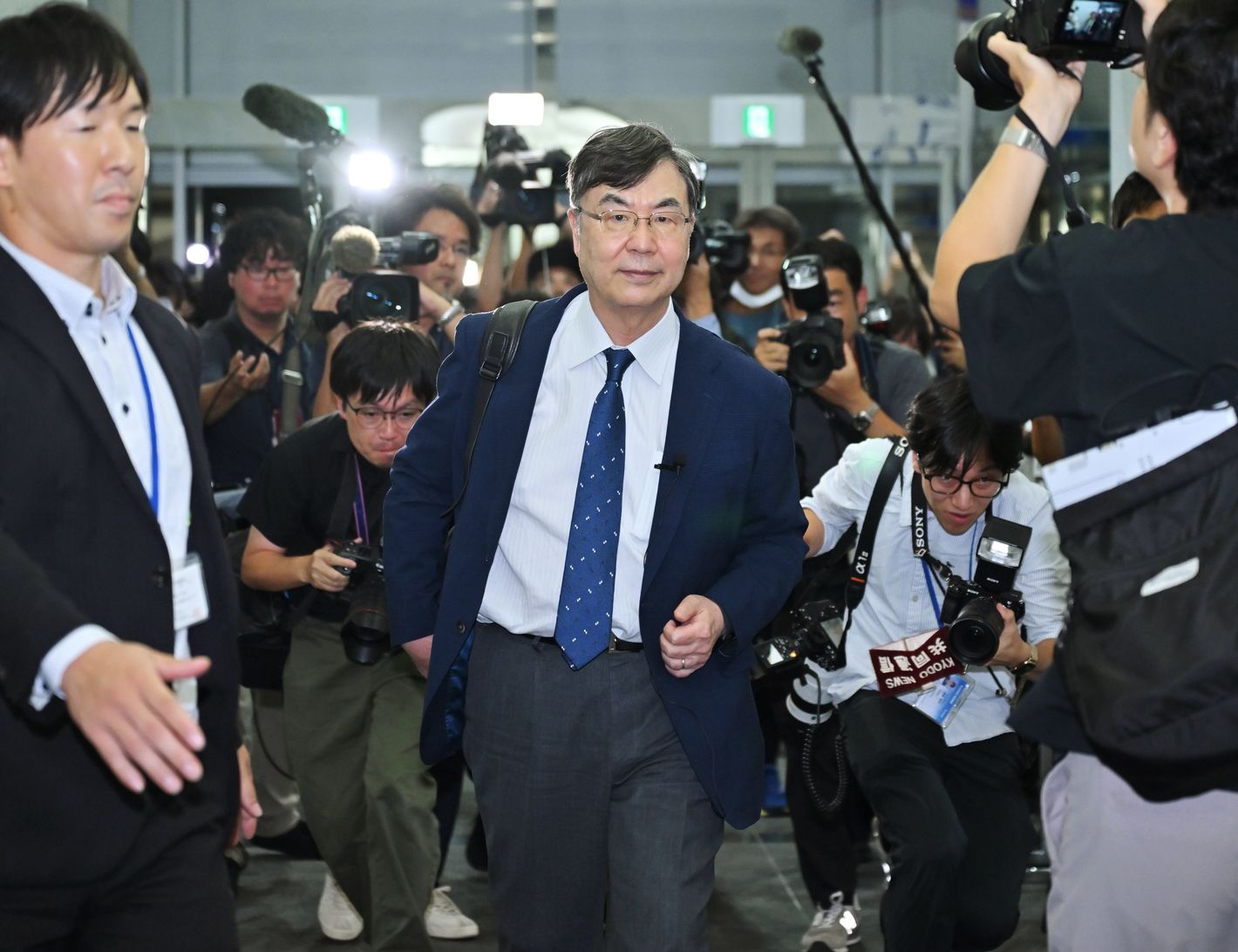ノーベル生理学・医学賞の受賞が決まり、記者会見会場に向かう大阪大の坂口志文特任教授 ©時事通信社