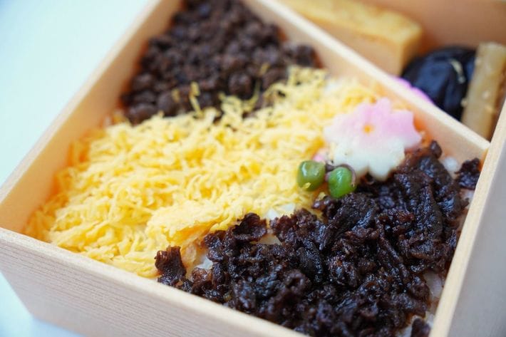 本居宣長弁当は、本居宣長が詠んだ「敷島の 大和心を 人とはば 朝日に匂ふ 山桜花」を駅弁で表現した。中心に桜の塩漬けを置き、ウグイス豆で桜の葉を表現。しぐれ煮とそぼろ煮は山影に見立て、錦糸卵は朝日をイメージしている