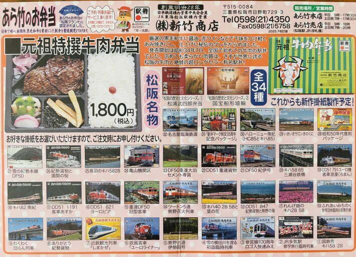 松阪市の名所のパンフレット・フリーぺーパー・お礼状を添えた、エア松阪(写真提供=駅弁のあら竹)