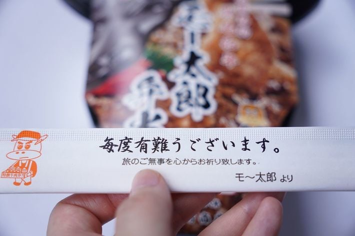 箸袋にも細やかなおもてなしが。駅弁を食べる前から心が温まった