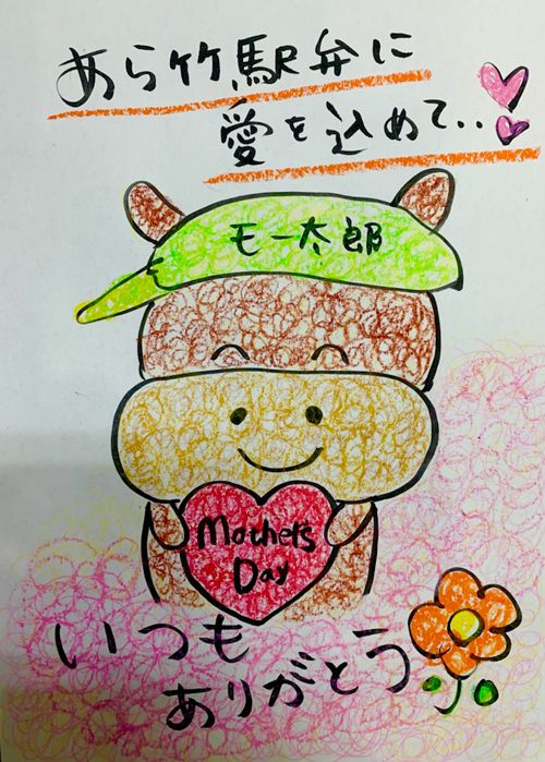 愛嬌たっぷりのモー太郎塗り絵の見本(写真提供=駅弁のあら竹)
