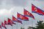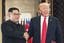 2018年6月、米朝首脳会談の共同声明の署名式で握手する北朝鮮の金正恩朝鮮労働党委員長(左)とトランプ米大統領=シンガポール