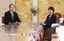党首会談に臨む自民党の高市早苗総裁(右)と公明党の斉藤鉄夫代表=10日午後、国会内