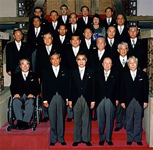 1999年10月、自民、自由、公明の「自自公」連立内閣となる小渕恵三政権が発足した(首相官邸ホームページより)
