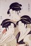 喜多川歌麿筆・寛政三美人:富本豊ひな(上)、難波屋おきた(右)、高島屋おひさ(左)〔写真=トレド美術館所蔵/PD-Art(PD-Japan)/