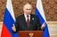 ロシアのプーチン大統領によるタジキスタンのドゥシャンベでの記者会見=2025年10月10日
