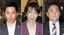 日本維新の会の吉村代表(左)、国民民主党の玉木代表(右)と国会内で個別に会談した自民党の高市総裁。自民は維新と連立政権に向けた政策協議を始めることで合意、高市氏は玉木氏に連立を視野に首相指名選挙での協力を要請した=2025年10月15日午後、国会