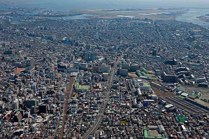 蒲田駅周辺から羽田空港方面(2012年4月7日、東京都)
