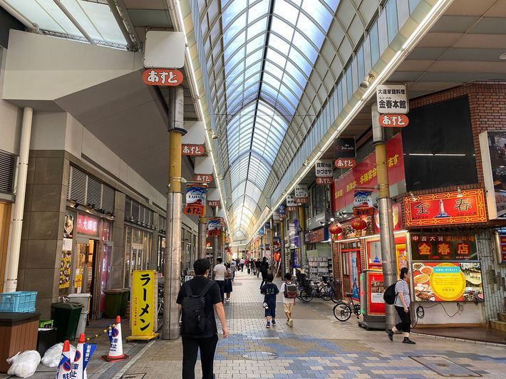 京急蒲田駅前の商店街。両駅間を移動する人も多いためか人通りは絶えない。最近は飲食店が増えた
