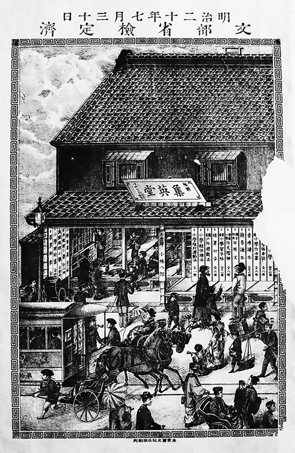 明治20年に日本橋にあった孝子の父が経営する集英堂の様子、『簡易読本』集英堂(長谷部真吾氏所蔵)