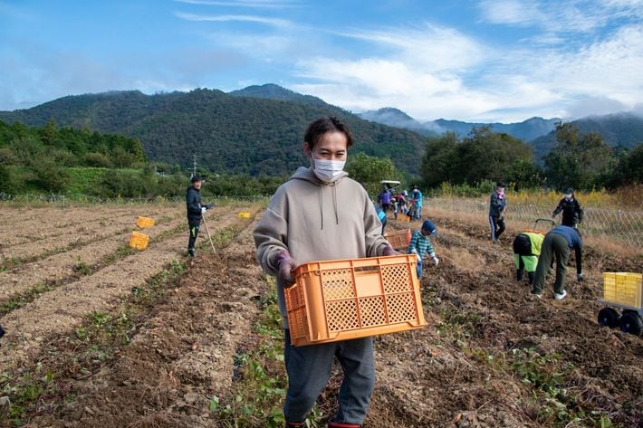 小澤さんと四万十ドラマのメンバーで芋ほり