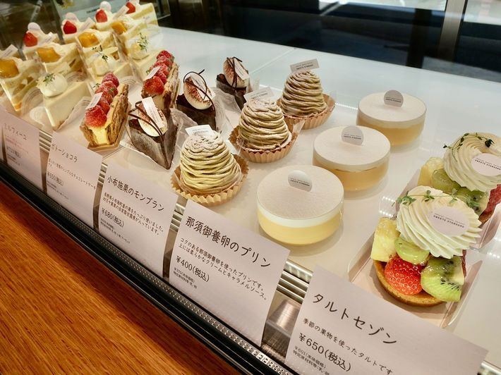 スイーツスタンダードの店内。地域の素材や季節の果物を使ったスイーツがショーケースに並んでいた
