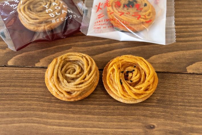 「焼きモンブラン」と(左)、その後開発した「焼きいもモンブラン」