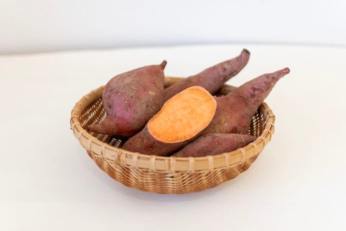 鮮やかなオレンジ色が印象的な、にんじん芋の断面。甘みが強くねっとりとした食感が特徴