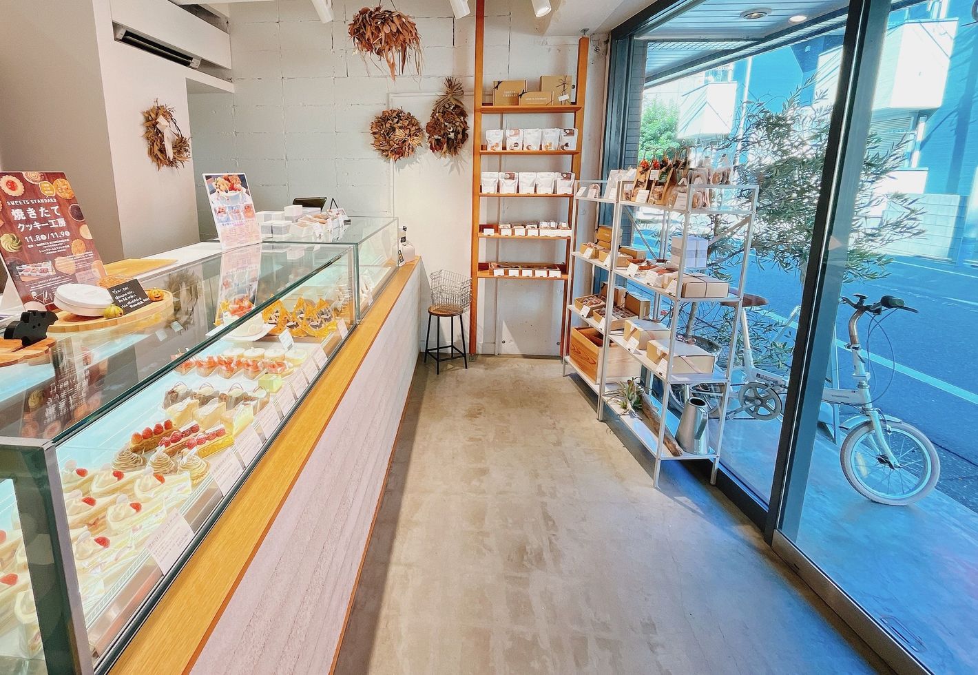 スイーツスタンダードの店内。地域の素材や季節の果物を使ったスイーツがショーケースに並んでいた