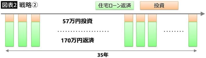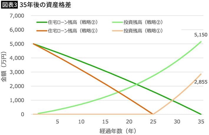 戦略①と戦略②の35年後の投資残高(図表=筆者作成)