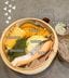 この日のせいろ蒸しは鮭、キャベツ、ブロッコリー、とうもろこし、かぼちゃ。食べ飽きないように、コチュジャンや柚子胡椒、ナンプラーなどの調味料でタレに工夫を