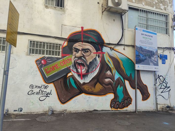 テルアビブにあるポケベルを持ったハッサン・ナスララ氏の落書き。ナスララ氏が殺害された週末に描かれた。 (写真=Nizzan Cohen/CC-BY-4.0/