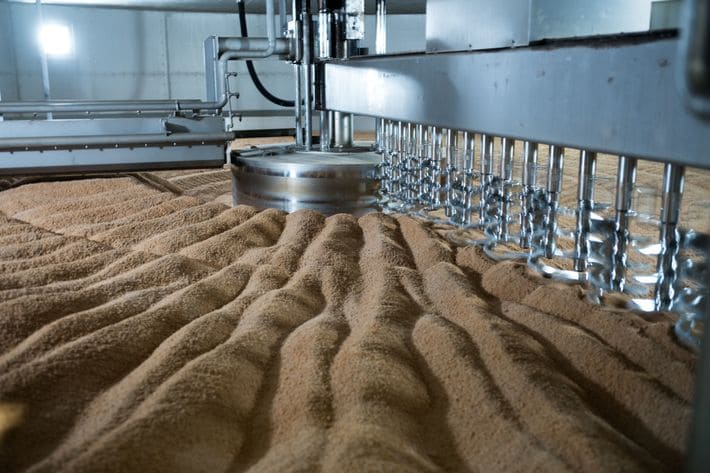 タンクの中はドレッシングのように層になっている。空気を送り込むことで上下をかき混ぜる