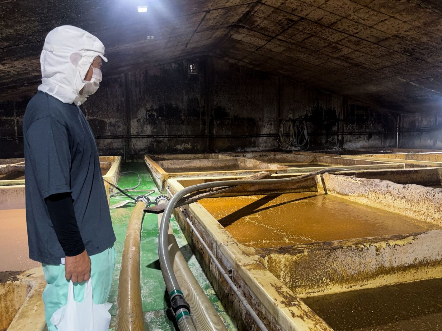 タンクの中はドレッシングのように層になっている。空気を送り込むことで上下をかき混ぜる