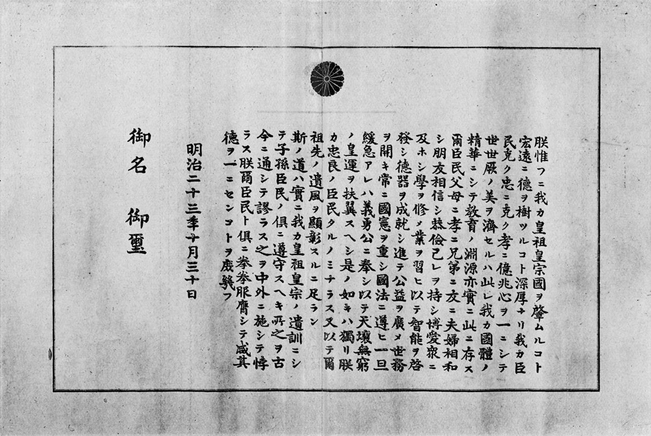 明治の道徳教育の象徴となった教育勅語(出典=亘理章三郎著『教育勅語と学校教育』茗渓会、1930年)(文=明治天皇/PD-Japan/