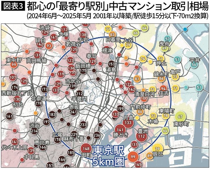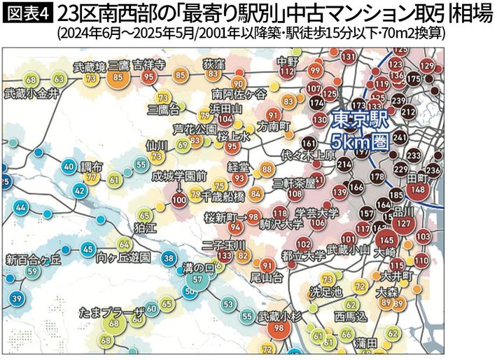 直近1年(2024~2025年)と比べて20~40%ほど安い駅が多かった(『