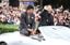 名古屋まつりでパレードに参加した2026年NHK大河ドラマ「豊臣兄弟!」の豊臣秀長役の仲野太賀(右)と織田信長役の小栗旬。2025年10月19日、名古屋市