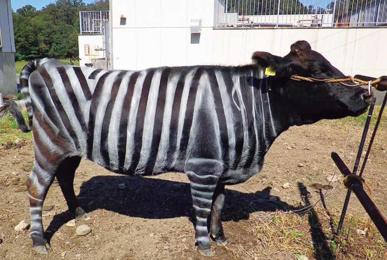 白い塗料で縦シマを描くことで吸血昆虫の飛来の減少が確認できた「シマウシ」。(写真提供:愛知県農業総合試験場)