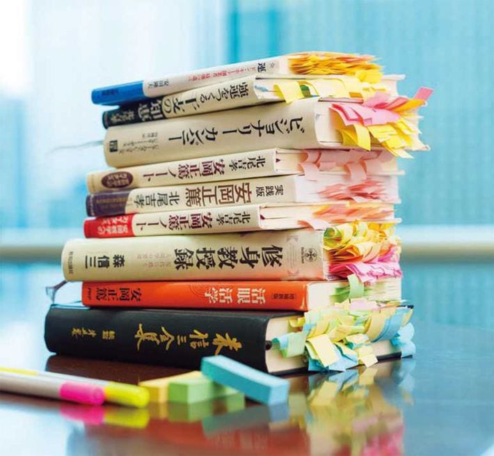 「愛読書を見せてほしい」という編集部のリクエストに応じ、北尾会長は厳選した9冊を持参してくれた。