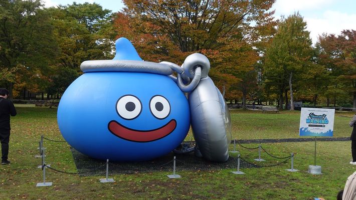 公園内の売店前では、ゲーム内の「スラミチ」ファンアートが描かれていた