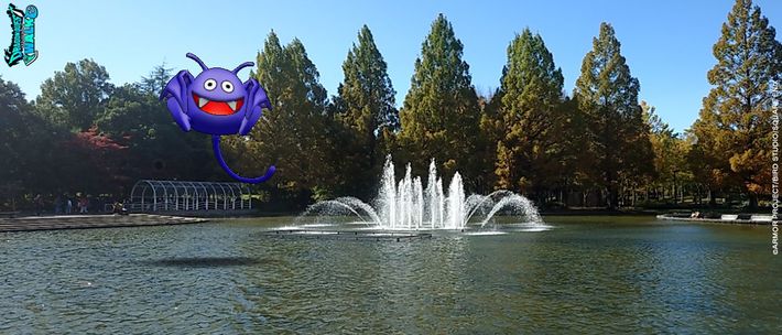 ゲーム内では、モンスターを使ったAR撮影もできる。七北田公園内にて