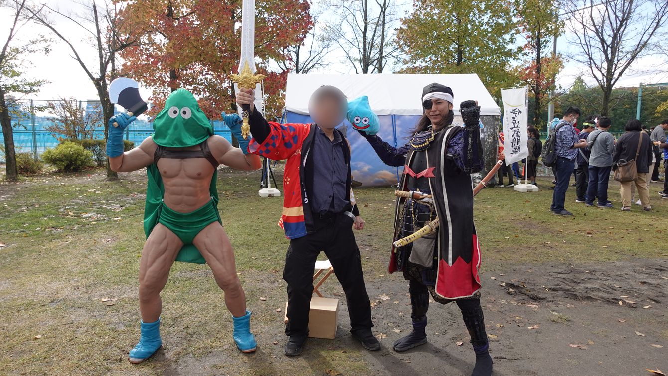 公園内の売店前では、ゲーム内の「スラミチ」ファンアートが描かれていた