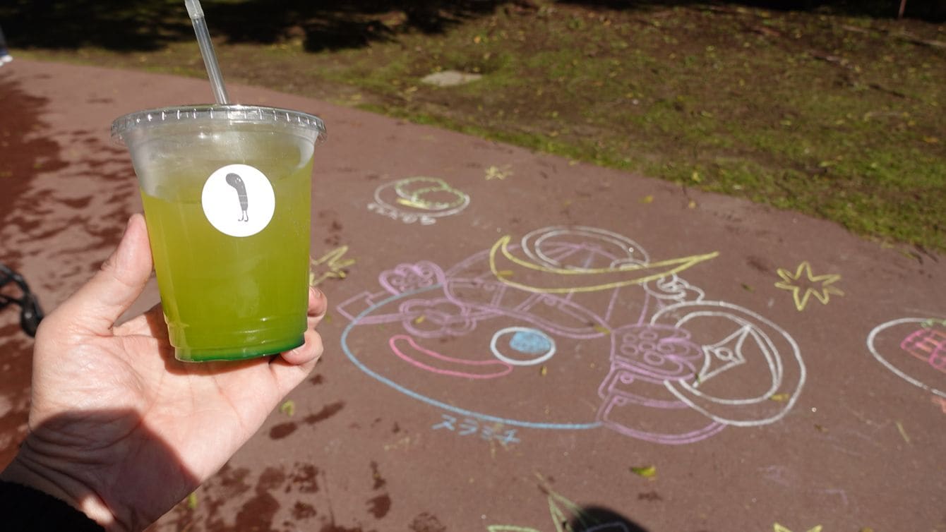 公園内の売店前では、ゲーム内の「スラミチ」ファンアートが描かれていた