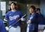 ドジャース・大谷(左)と水原氏=2024年3月1日、グレンデール