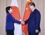 日中首脳会談を前に中国の習近平国家主席(右)と握手を交わす高市首相=2025年10月31日、韓国・慶州(代表撮影・共同)