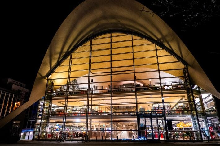 オーロラ観光でも有名な北極圏のトロムソにある公立図書館。全面窓ガラスの理由には、冬の暗さが関係している。