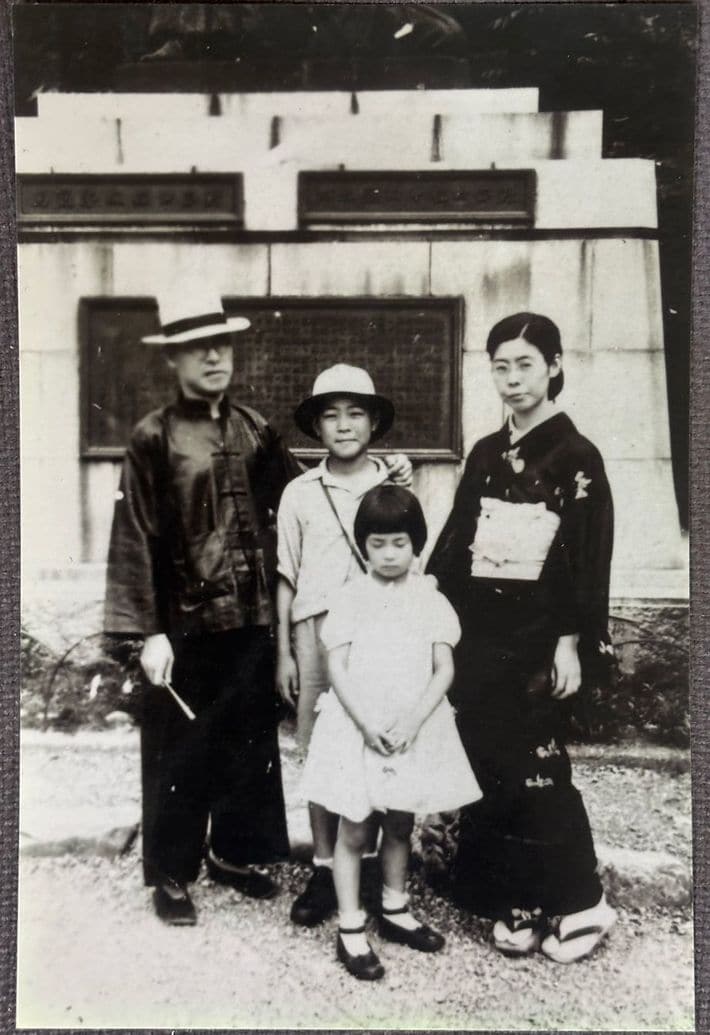 父の撮影による家族の写真。右端が母。真ん中に兄と小松原さん。左端は叔父さん。