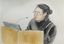 被告人質問に臨む山上徹也被告=2025年11月20日、奈良市[イラスト・松元悠氏]