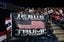 米ジョージア州で開かれたトランプ支持派の集会で「イエスはわれわれの救い主、トランプはわれわれの大統領」と書かれた旗を掲げる福音派の参加者(2024年3月9日)(写真=ZUMA Press/共同通信イメージズ)